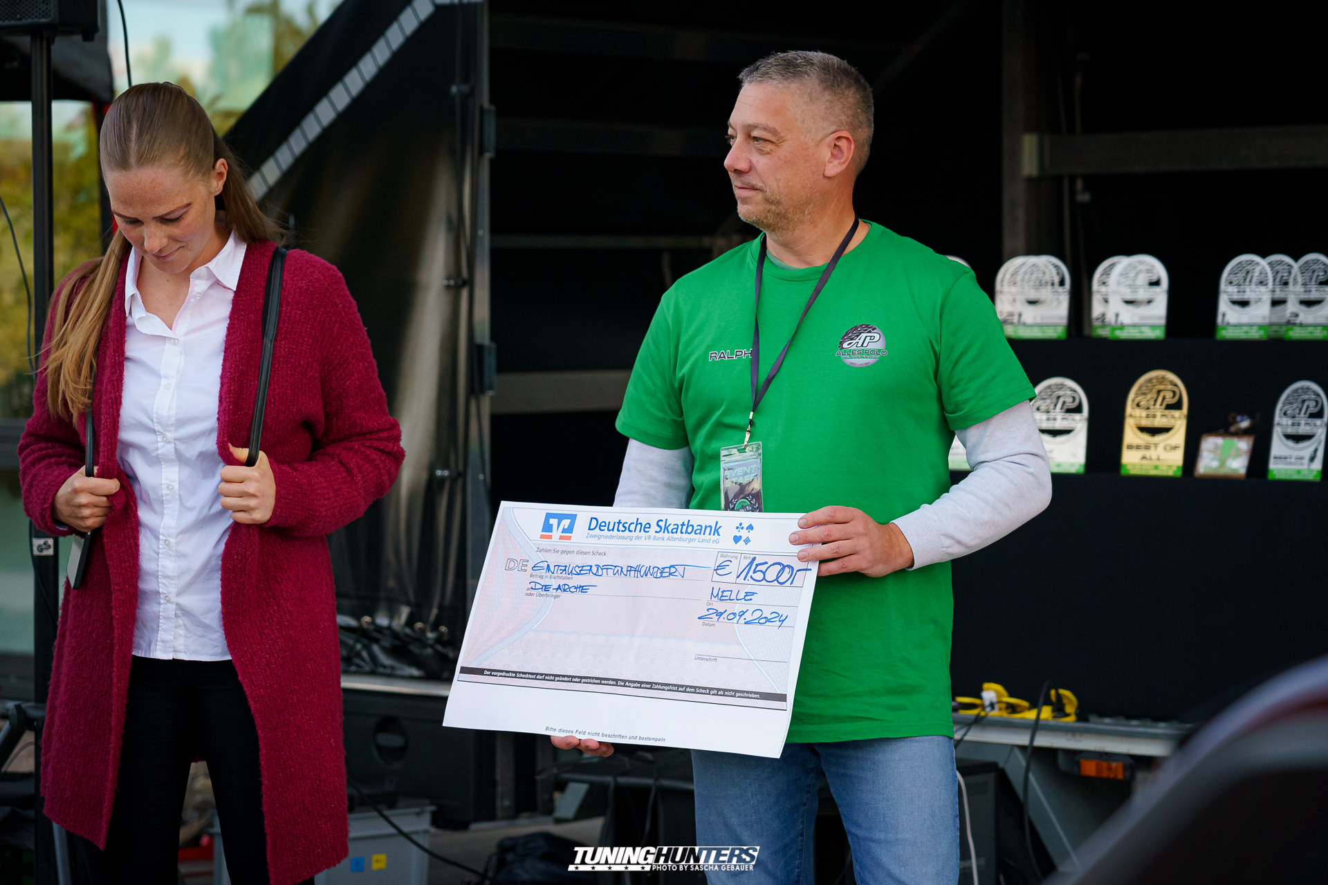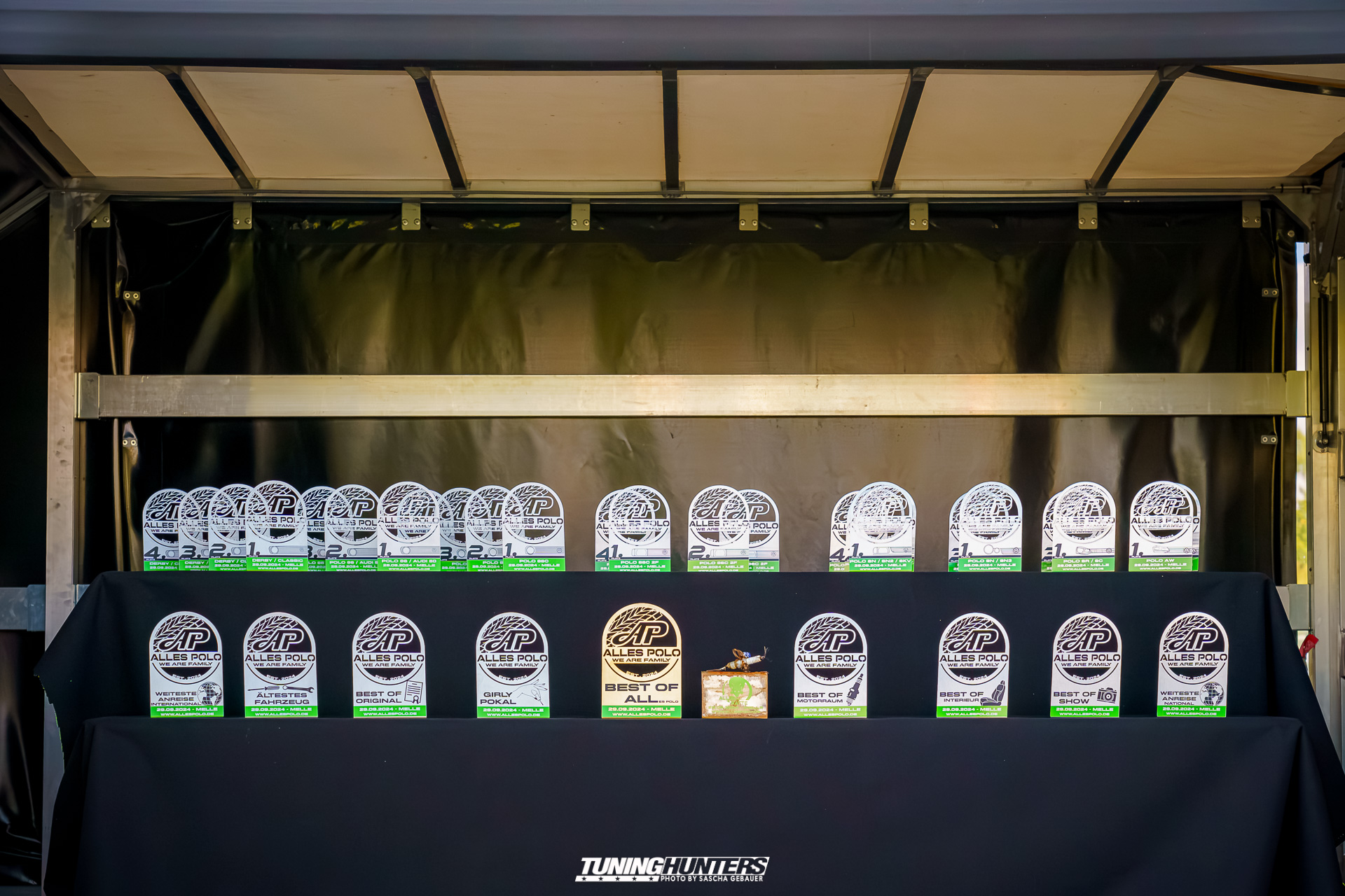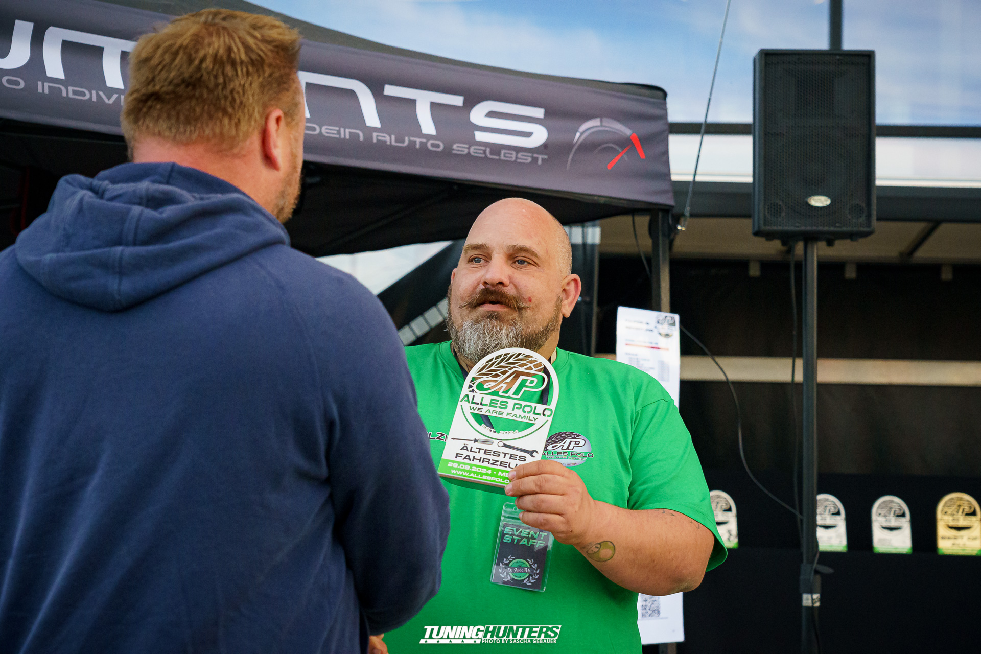 Ein besonderes Highlight des Treffens war die Pokalverleihung, bei der die schönsten, originellsten und ältesten Polos ausgezeichnet wurden. Die Teilnehmer hatten ihre Fahrzeuge sorgfältig vorbereitet, um in den verschiedenen Kategorien zu konkurrieren. Es gab viel zu sehen – vom kunstvoll lackierten Showcar bis hin zum originalgetreuen Klassiker waren alle Facetten des Polos zu finden, auch ein für uns völlig unbekanntes Sondermodell namens Laura Ashley. Leider konnte der Rattenpokal in diesem Jahr nicht vergeben werden, da sich niemand anmeldete – dennoch tat dies der Stimmung keinen Abbruch.
