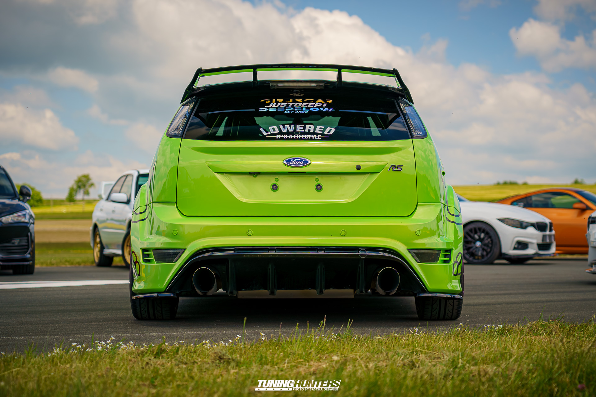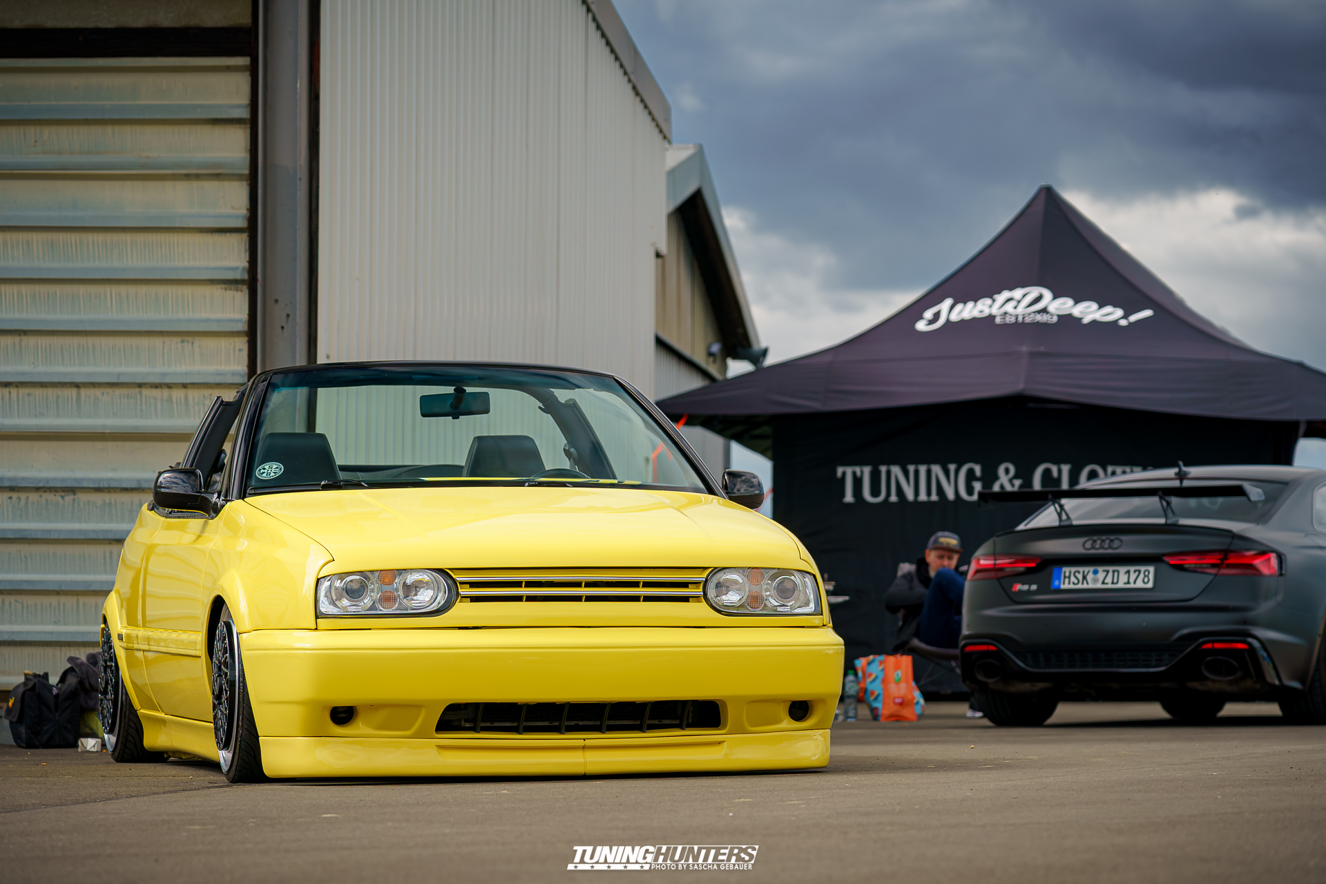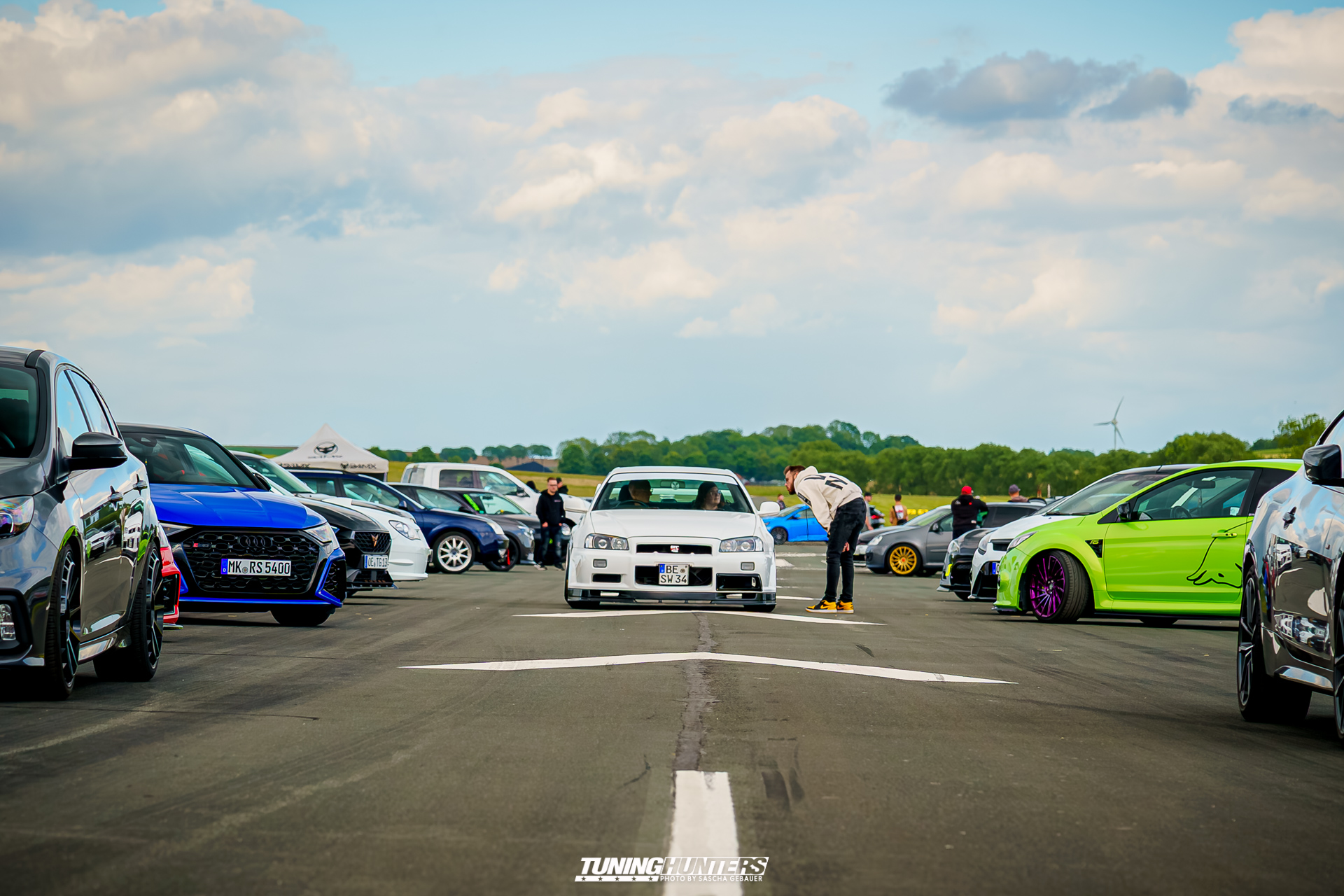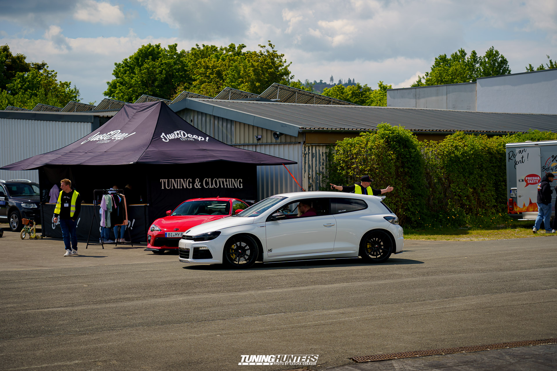 Der Einlass im Vorverkauf startete punktgenau um 12:00 Uhr, was dank dem Team um JustDeep ein reibungsloser Ablauf war. Der mittlerweile echt schon professionelle Umgang des Team, versprach eine zügige Abfertigung, was den Tuningfreunden zu Gute kam. Trotz dezentem Personalbestand und schmalem Budget zeigte sich das JustDeep-Team bestens vorbereitet: Karten kontrollieren und schon rollte man ohne großes Warten aufs weite Gelände der Landebahn. Dass Autos bis auf die angrenzende Straße zurückstauten, war bei der Begeisterung der Szene auf eine Landebahn wenig verwunderlich. Die Veranstalter setzten auf Effizienz und Freundlichkeit: Kurze Wege, klare Zeichengebung der Helfer, die jederzeit zur Stelle waren.