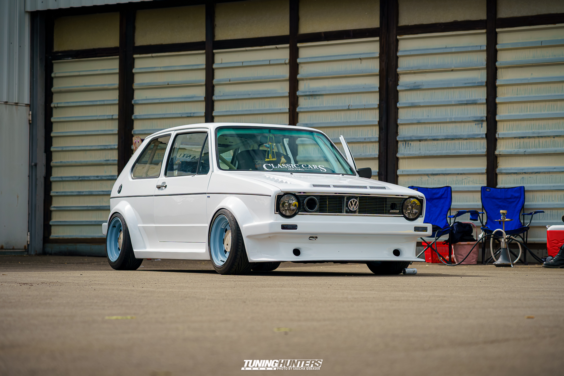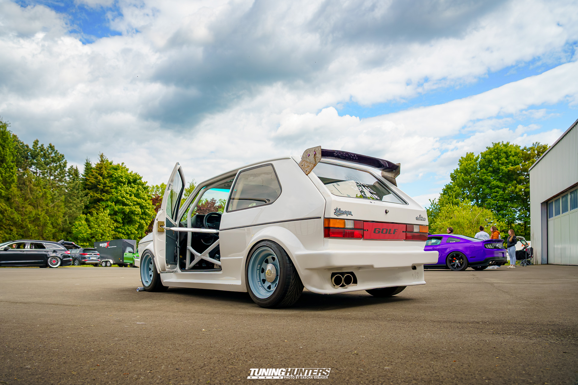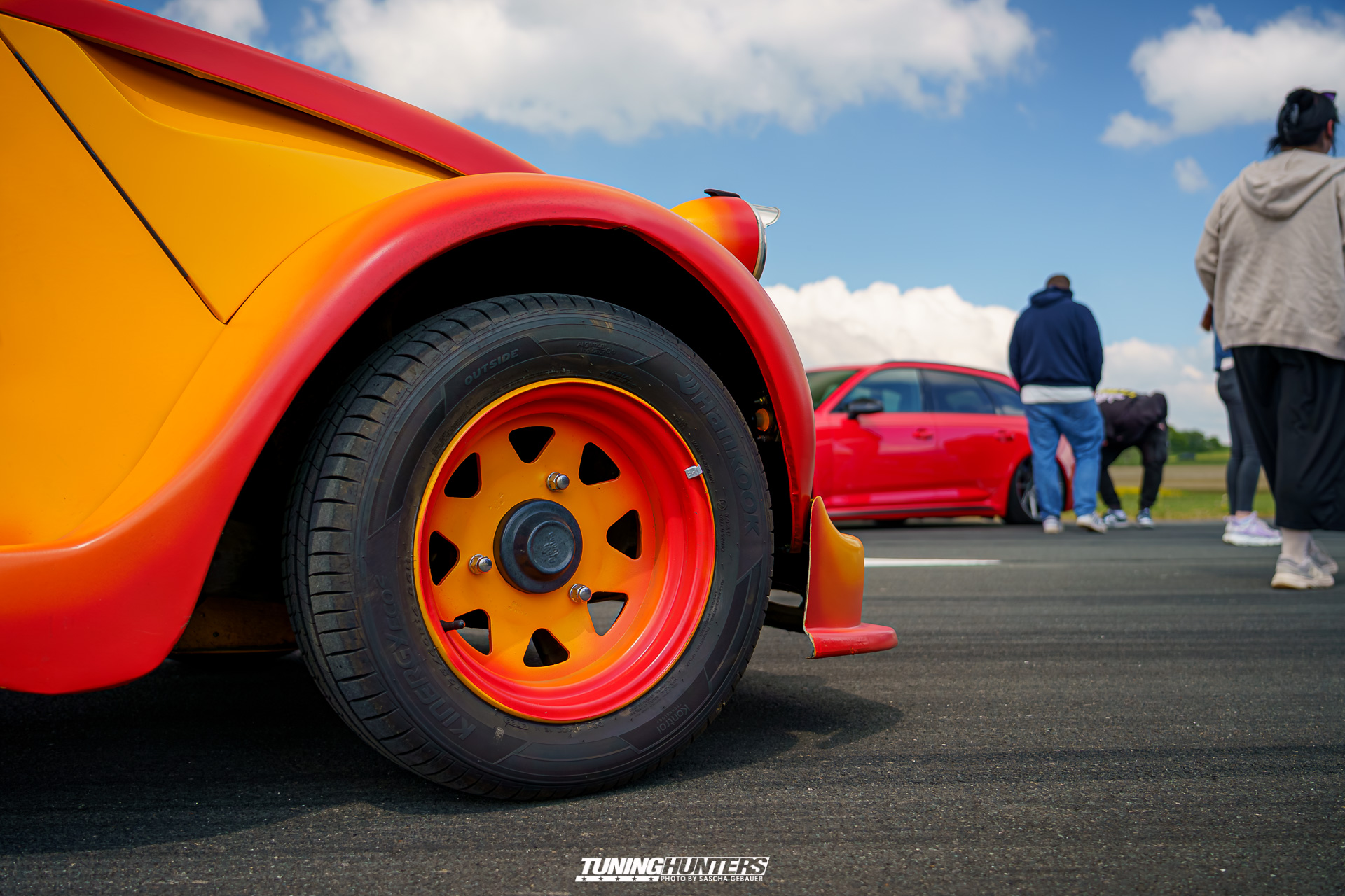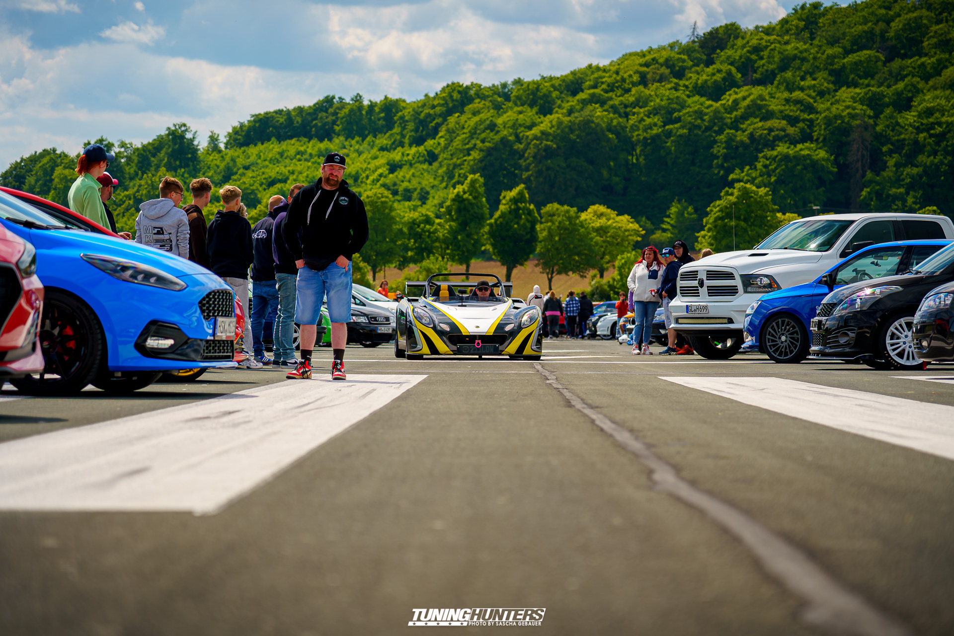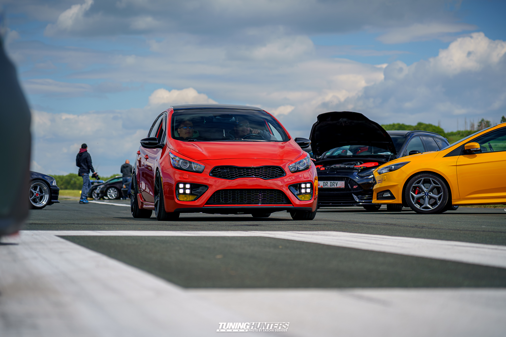 Der Einlass im Vorverkauf startete punktgenau um 12:00 Uhr, was dank dem Team um JustDeep ein reibungsloser Ablauf war. Der mittlerweile echt schon professionelle Umgang des Team, versprach eine zügige Abfertigung, was den Tuningfreunden zu Gute kam. Trotz dezentem Personalbestand und schmalem Budget zeigte sich das JustDeep-Team bestens vorbereitet: Karten kontrollieren und schon rollte man ohne großes Warten aufs weite Gelände der Landebahn. Dass Autos bis auf die angrenzende Straße zurückstauten, war bei der Begeisterung der Szene auf eine Landebahn wenig verwunderlich. Die Veranstalter setzten auf Effizienz und Freundlichkeit: Kurze Wege, klare Zeichengebung der Helfer, die jederzeit zur Stelle waren.