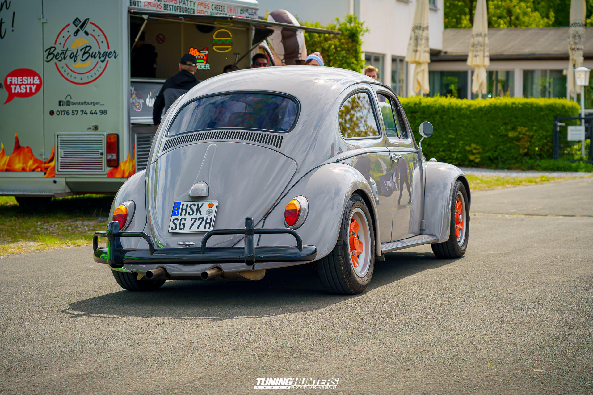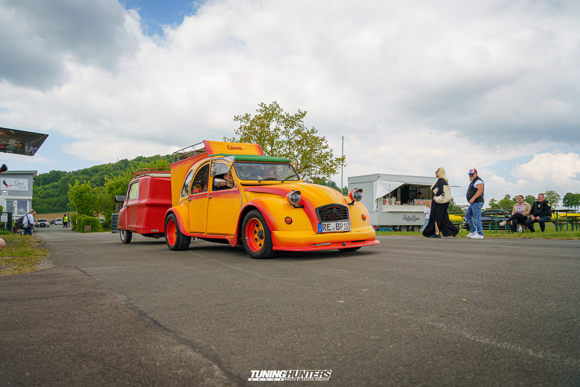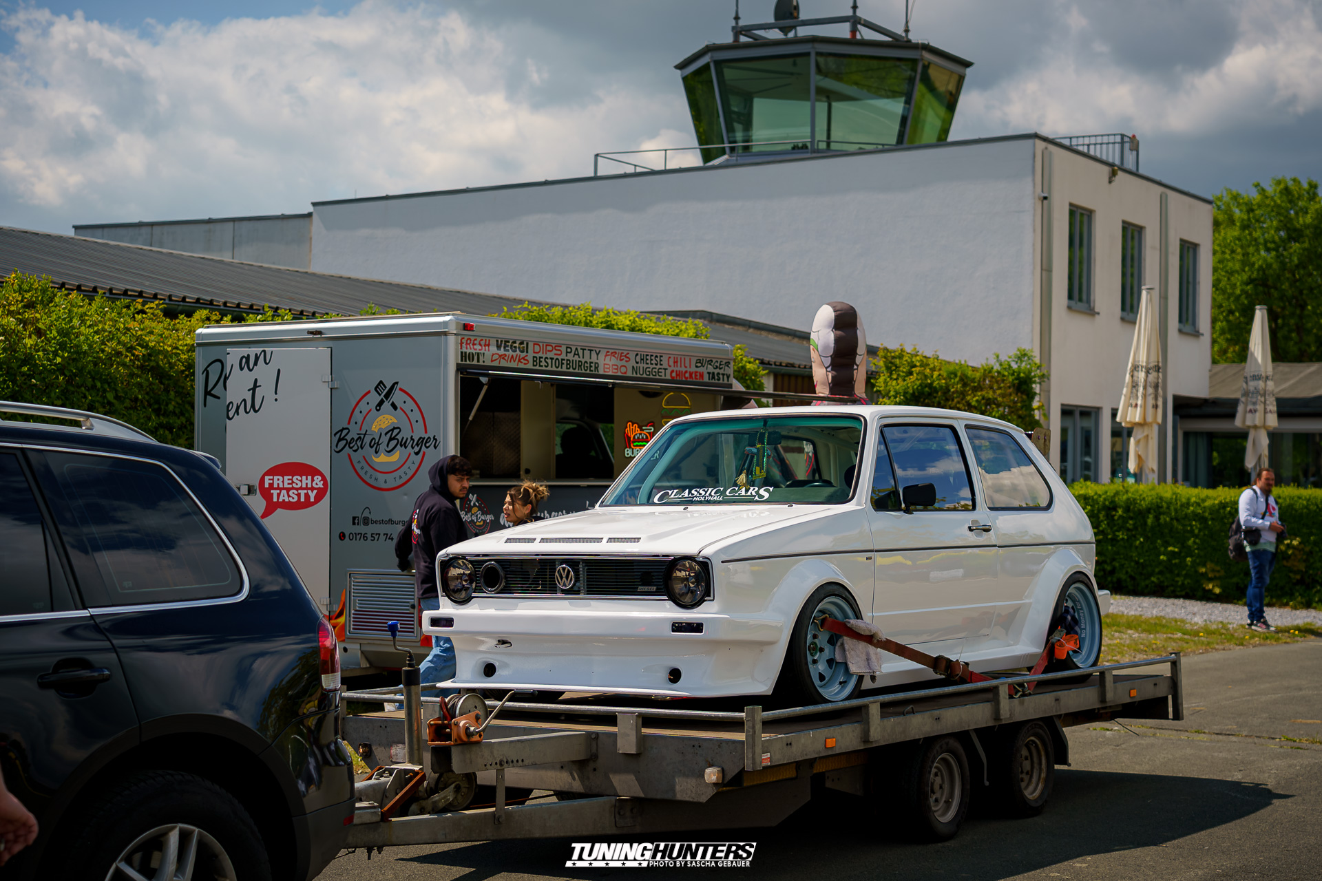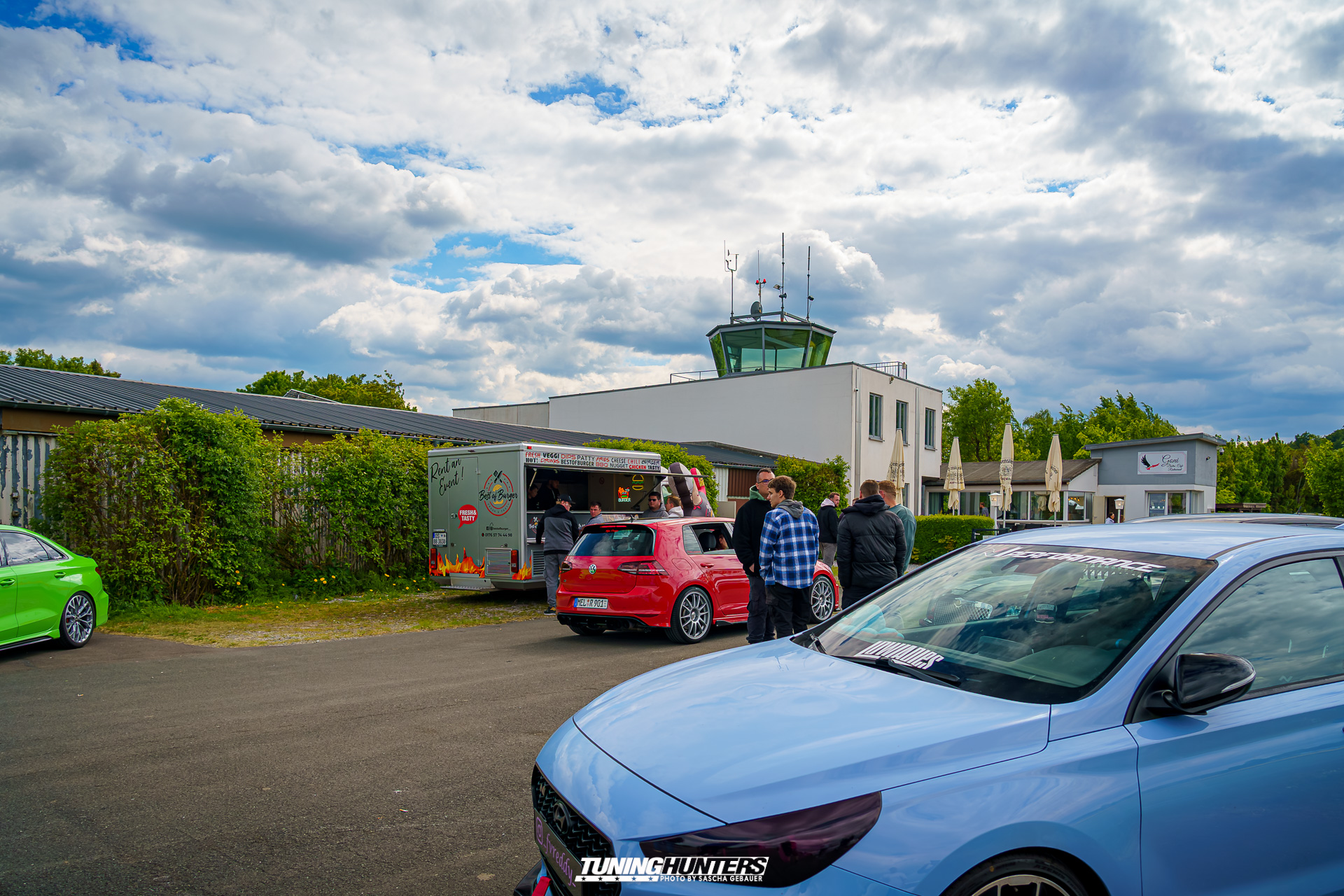 Der alte Airport von Brilon fungierte als ungewöhnliches, aber ideal passendes Areal für Jetlag V.3. Das Vorfeld der Rollbahn bot genug Platz für Aussteller, Essen-stände, Besucher und dem Kinderbereich, zugleich verlieh die weitläufige Szenerie dem Event einen Hauch von Abenteuer und schöner Kulisse. Die Betonpisten, gestern noch Zeugen von Flugbewegungen, wurden an diesem Tag zu Tribünen für Klassiker, getunte Boliden und seltene Youngtimer. Die Atmosphäre zwischen Hangar-Charme und Frischluft-Feeling war einmalig – hier konnte man das Summen der Motoren nicht nur hören, sondern auch teils auf Beton spüren.