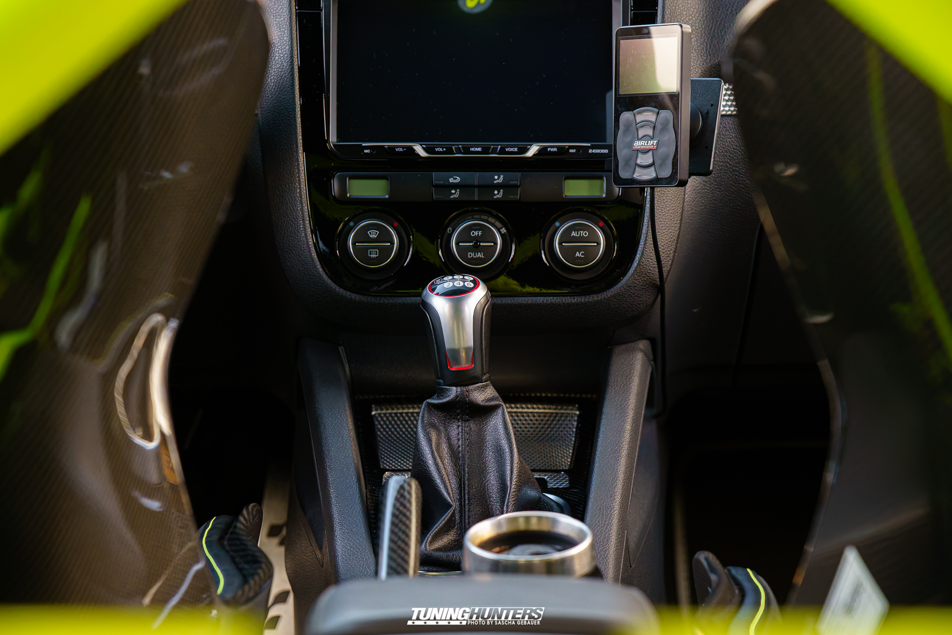 Türverkleidungen gewechselt von Stoff auf Leder in schwarz,Dachhimmel,abc Säulen Kofferraum Abdeckung ersetzt durch schwarze,Carbon Lenkrad mit Neon Nähten und 12 Uhr Markierung,Multifunktion nachgerüstet,lackierte innenraumteile Lüfter links rechts , mittelkonsole,Lenkrad Schaltfläche,Recaro Podium Carbon mit Polstern in Leder schwar/Alcantara schwarz mit Neon Nähten Schaltknauf vom GTI Edition Golfball ,Schroth Gurte 4 Punkt ,Fußmatte in grau mit r32 Logo Golf6 R Lichtschalter und Schalter /fenster E-MFA von kufatec nachgerüstet,sternperformance clubsportteppich/netz strebe Wiechers clubsportbügel in neon gelb, Carbon Tank 20 Liter mit 2 Kompressoren,led Innenraum Beleuchtung komplett,scheibenkeil in schwarz ,Folia tec Folie hintere Scheiben in schwarz |